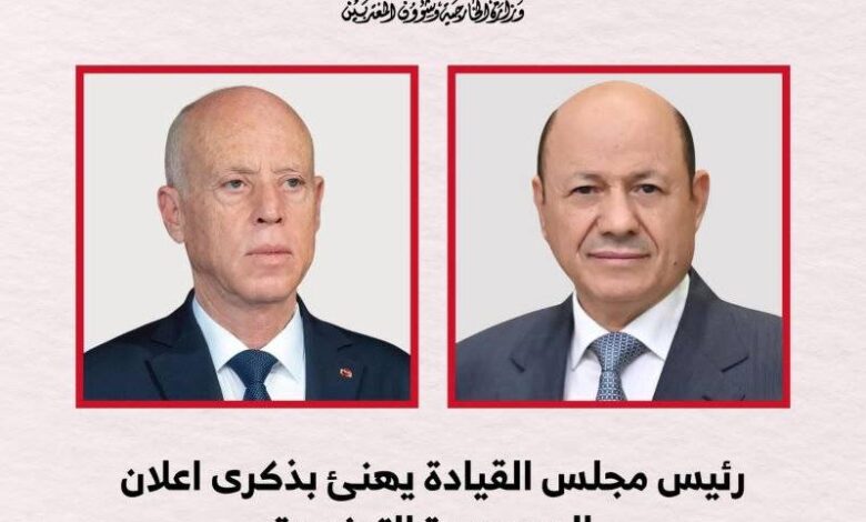 دن-سبأنت بعث فخامة الرئيس الدكتور رشاد محمد العليمي، رئيس مجلس القيادة الرئاسي، برقية تهنئة الى اخيه فخامة الرئيس قيس سعيد،…